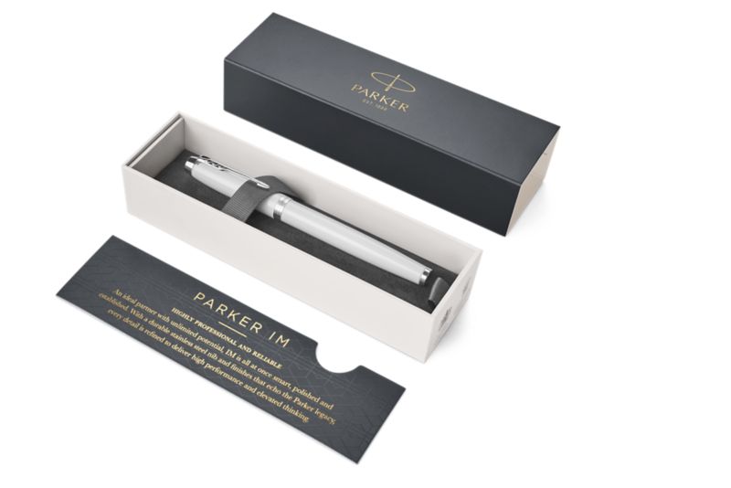 Ручка роллер Parker IM Metal White CT от официального дилера Parker в Прокопьевске. Вы можете дополнительно заказать гравировку, которая подчеркнет Вашу оригинальность и придаст памятность статусному подарку. Все ручки Паркер поставляются в фирменном футляре.